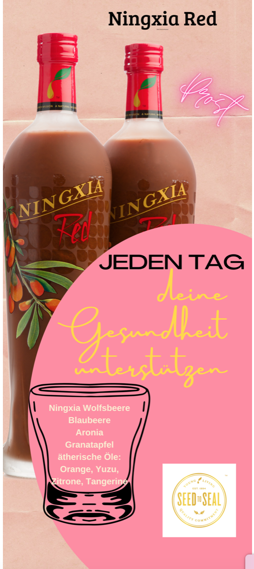 Es ist ein köstliches Getränk, das es in praktischen Päckchen und in großen Flaschen zu kaufen gibt. In NingXia Red sind nicht nur Wolfsbeeren enthalten, sondern auch Blaubeeren-, Granatapfel-, Apfelbeeren-, Kirsch- und Pflaumensaftkonzentrate, Stevia (ein kalorienfreier Süßstoff) und reiner Vanilleextrakt. Zusätzlich sorgen ätherische Öle von Orange, Yuzu, Zitrone und Mandarine für einen süßen Zitrusgeschmack. Nutze NingXia Red und unterstütze damit Deine Gesundheit und Dein allgemeines Wohlbefinden.